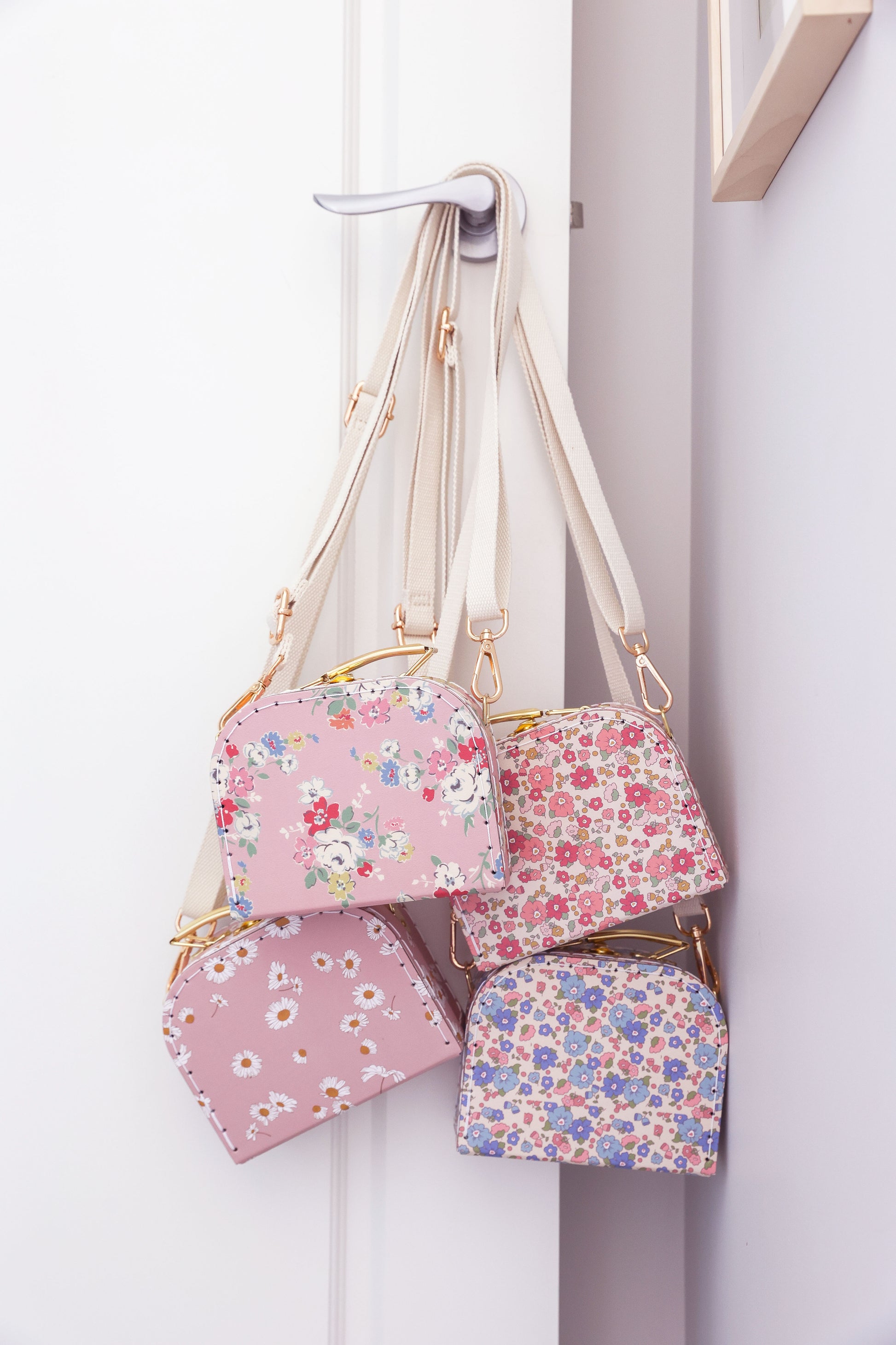 A fashionable cross body mini case in a sweet little floral print. The cutest size and adjustable strap. A cute perfect first bag for your little ones accessories collection. Suitable for ages 3 & up.