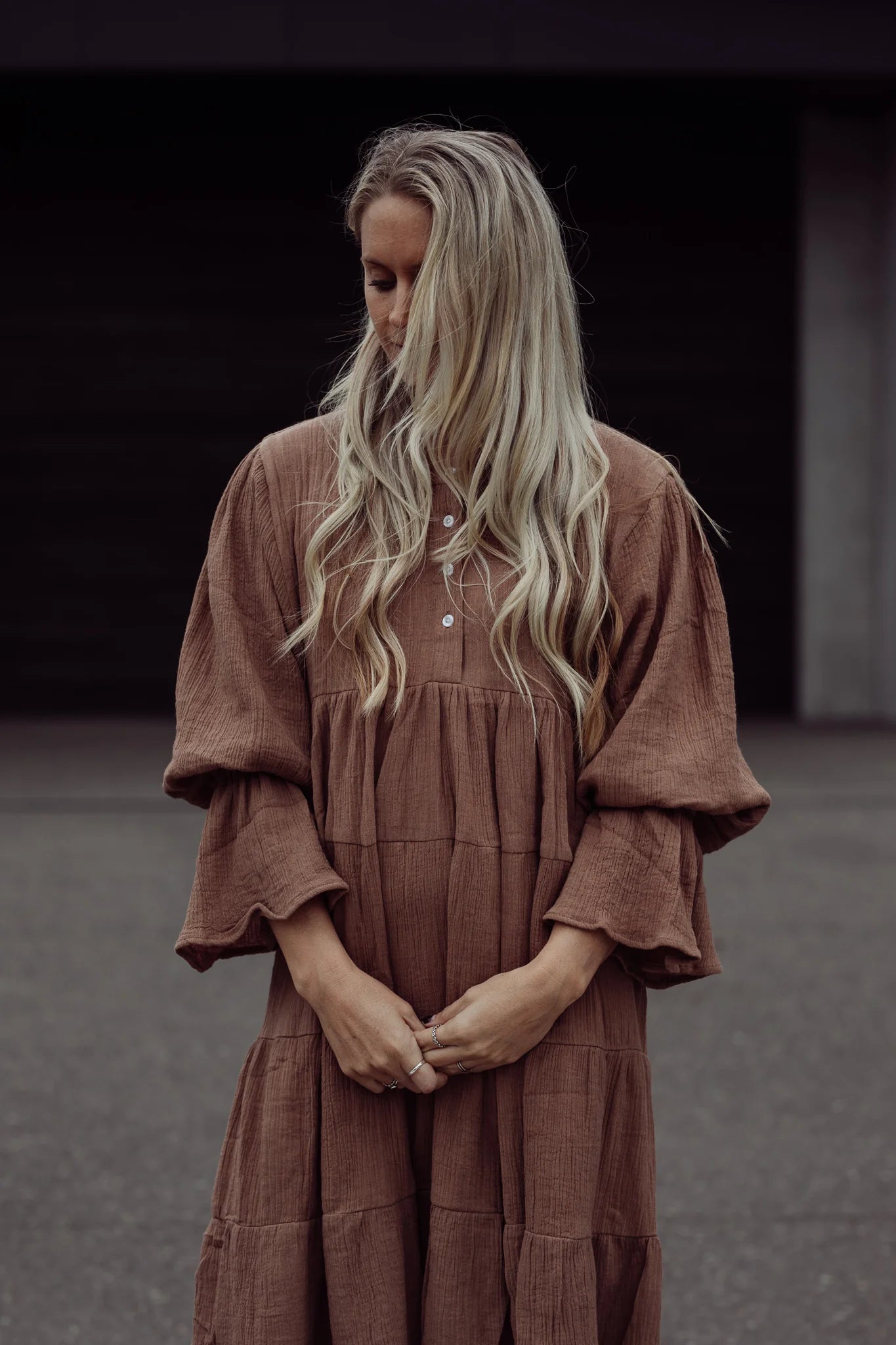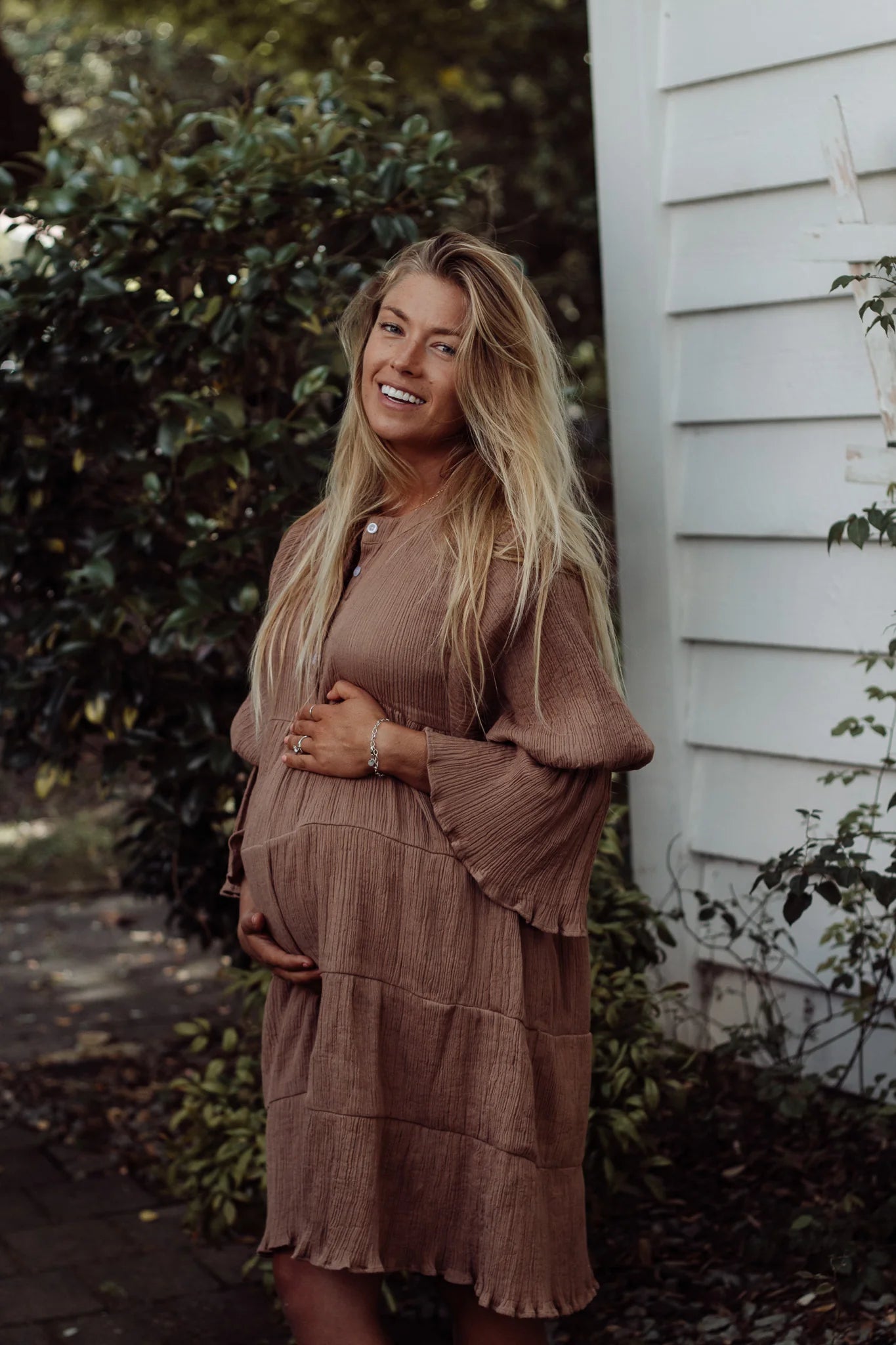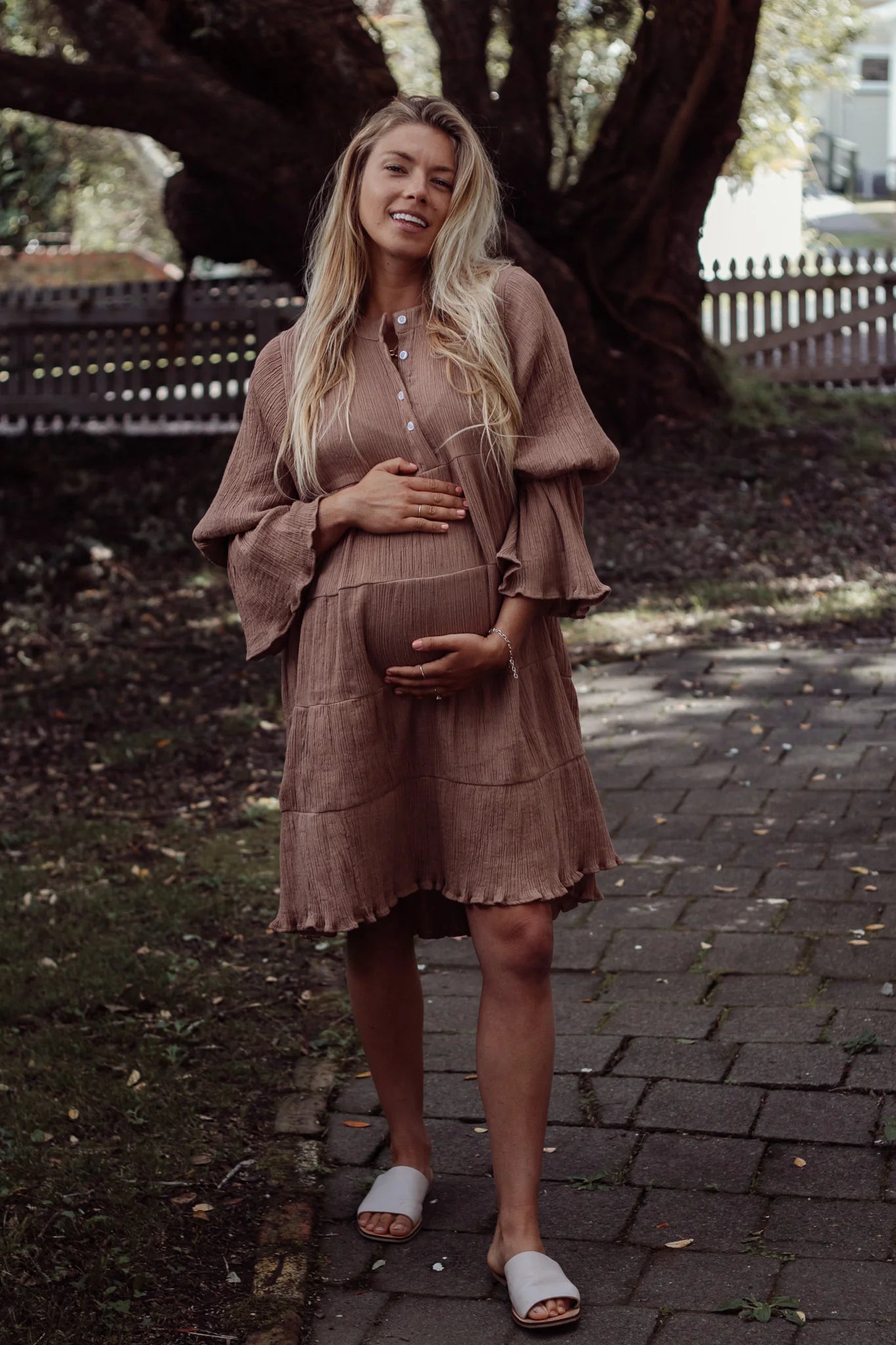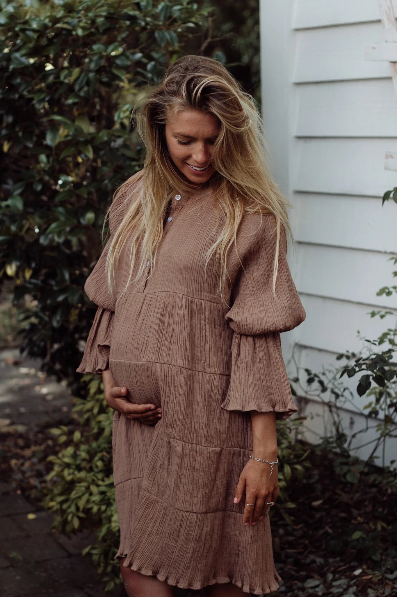 Feel beautiful throughout your days wearing our Cora maternity dress, made from soft cotton gauze. The material drapes so beautifully, letting our statement billowed sleeves stand out as a main feature.
