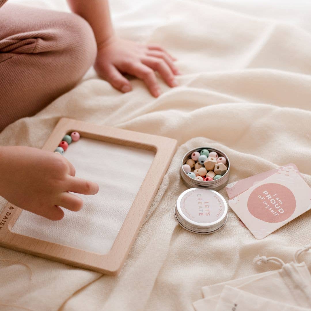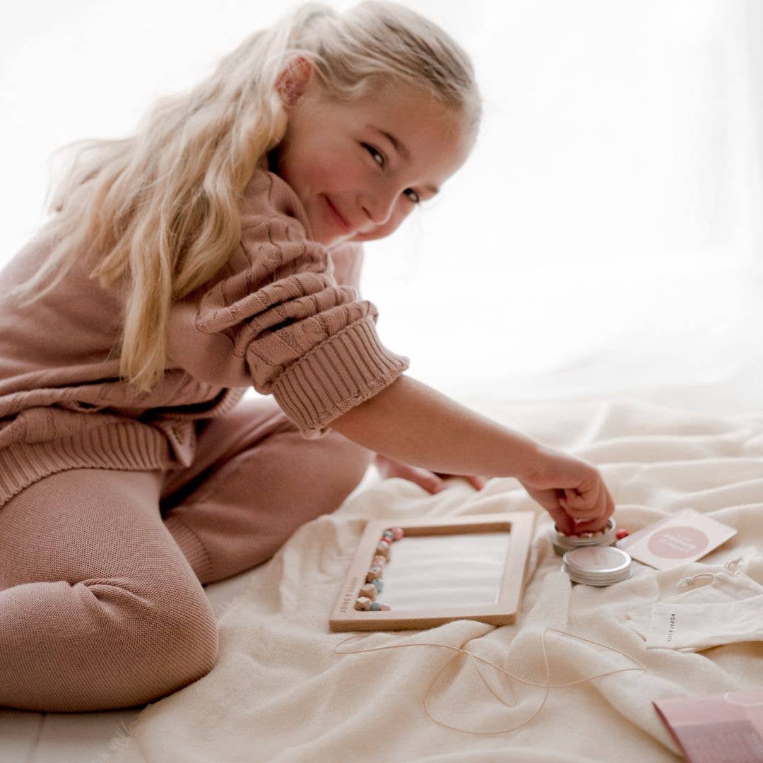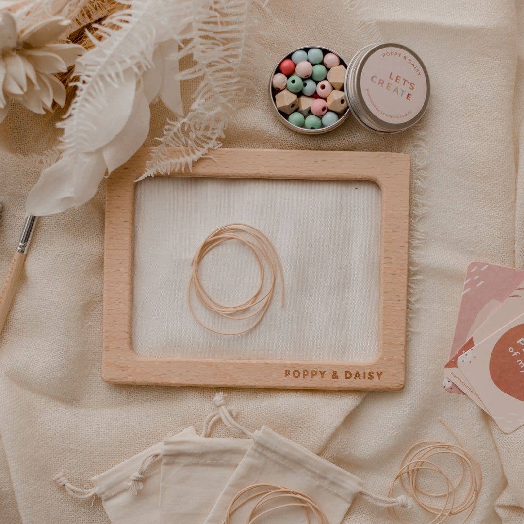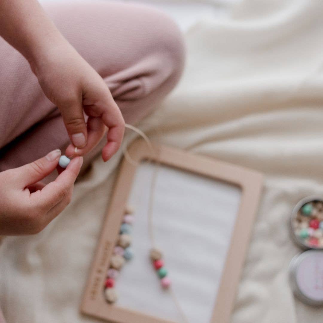 Design and create 4 beautiful necklaces crafted from all natural materials. This kit has everything you need to put together 4 gorgeous necklaces, including wooden beads, cotton cord and a wooden beading board to help you plan your designs and prevent beads from escaping! We also include three cotton bags, so that each necklace can be packaged up into a beautiful gift for 3 friends! Be inspired, be creative and learn the joy of giving. Board can be decorated and personalised and used for further crafting.