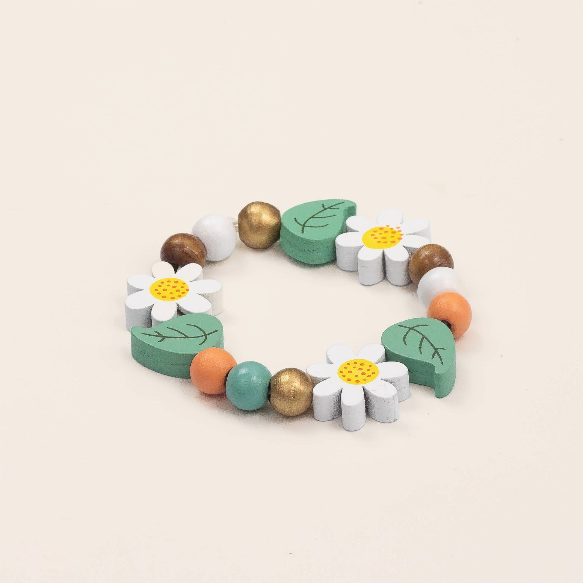Children can construct their daisy chain using the daisy, leaf & spherical beads together with the elastic provided. The elastic comes with metal ends to help children add beads with ease.