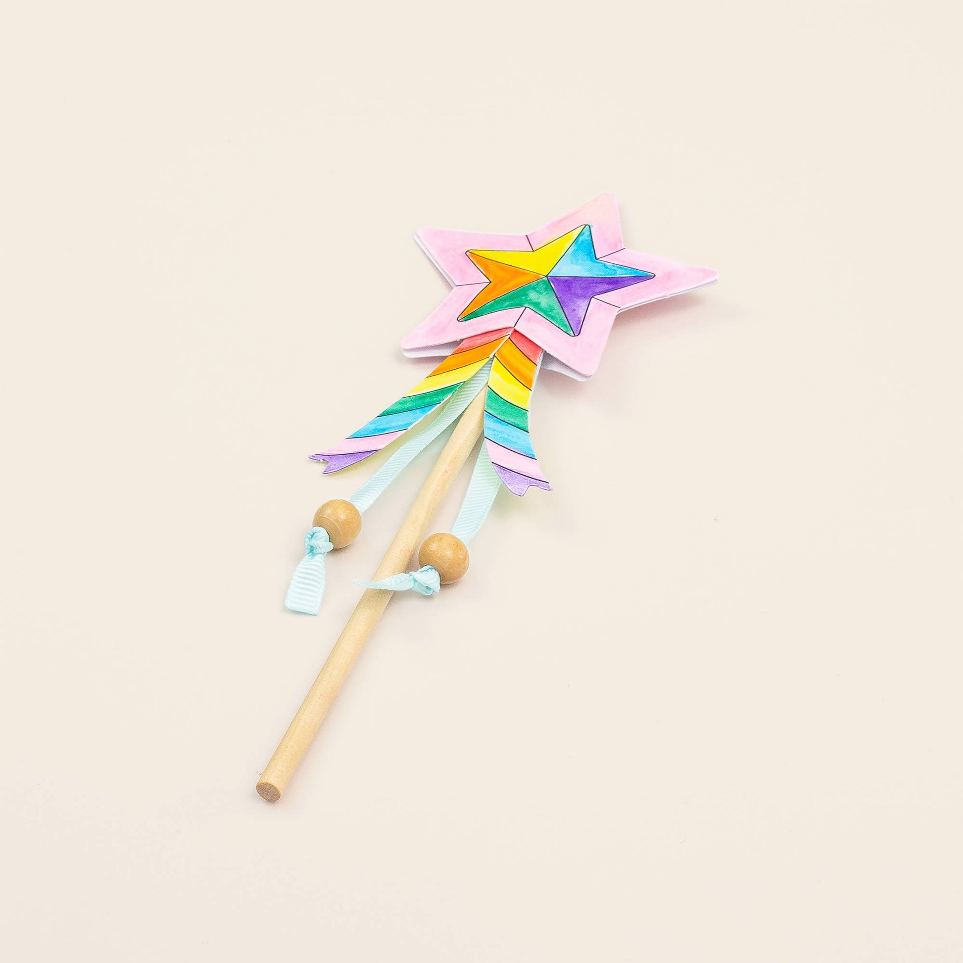 Children can colour the star & ribbon cut outs with their chosen pattern, then it's time to construct their wand. Once the stick & ribbons are taped on, the stars can be stuck together. Beads can be added to the base of the ribbons for additional effect. Time to wave those wands & spread the magic.