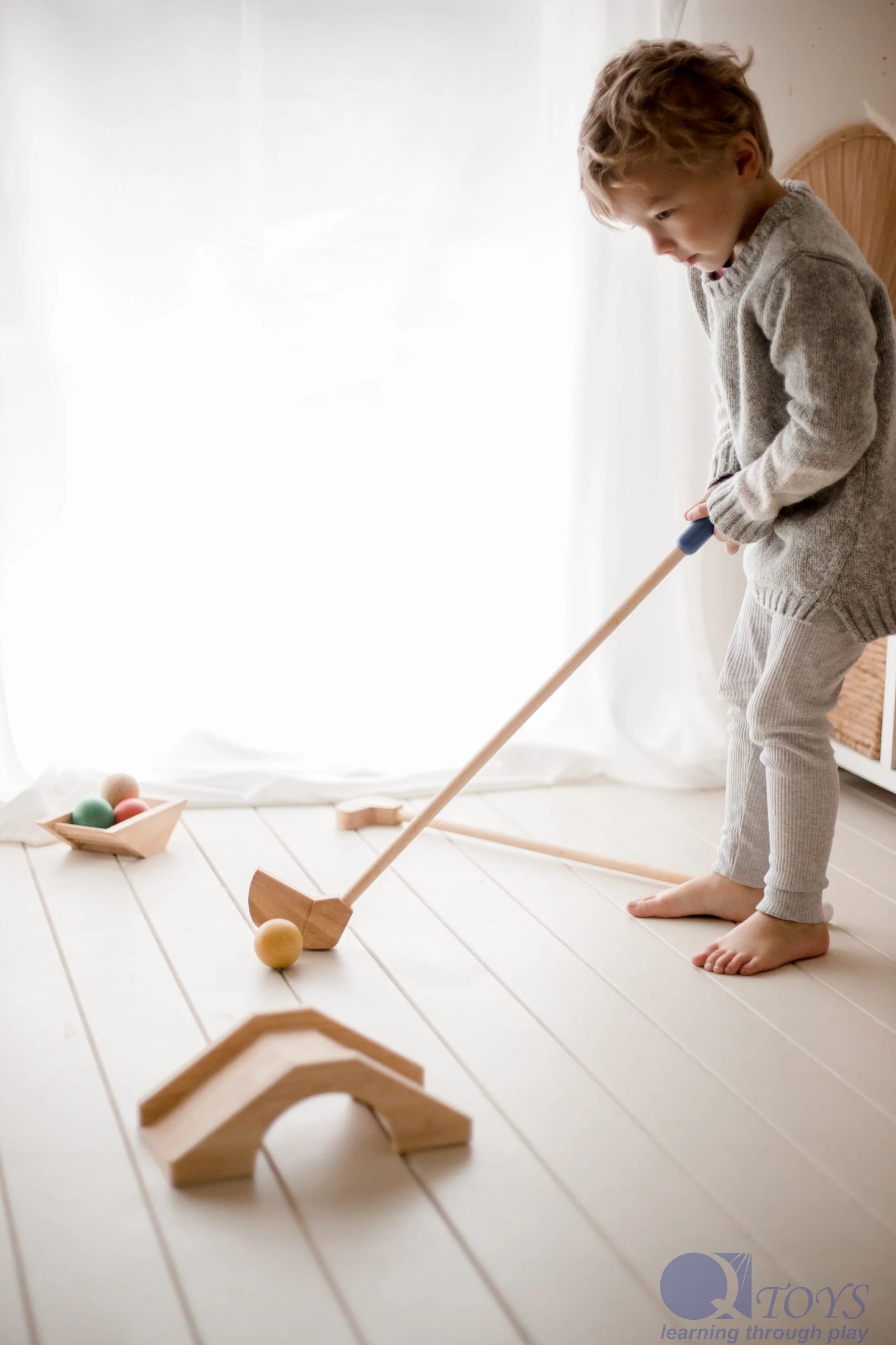 Introducing the Mini Golf Set, a delightful and engaging toy designed to provide toddlers with fun physical exercise both indoors and outdoors. This set is perfect for little ones who love to play and stay active. With its thoughtfully crafted design, the Mini Golf Set offers a range of challenges that grow with your child, promoting development and enjoyment in equal measure. Made from plantation timber and non-toxic materials, this set is safe, durable, and eco-friendly, making it a great addition to any child’s playtime routine.