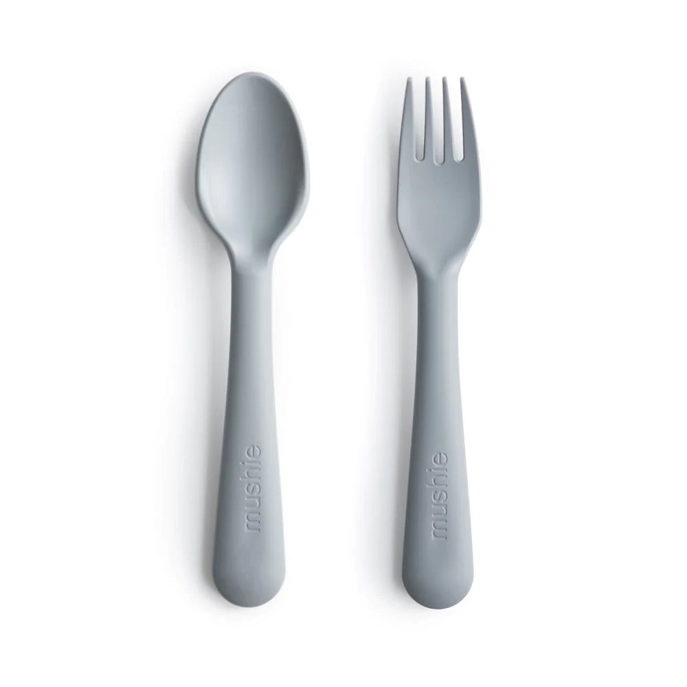Introduce your baby to solid food with Mushie’s plastic fork and spoon set!