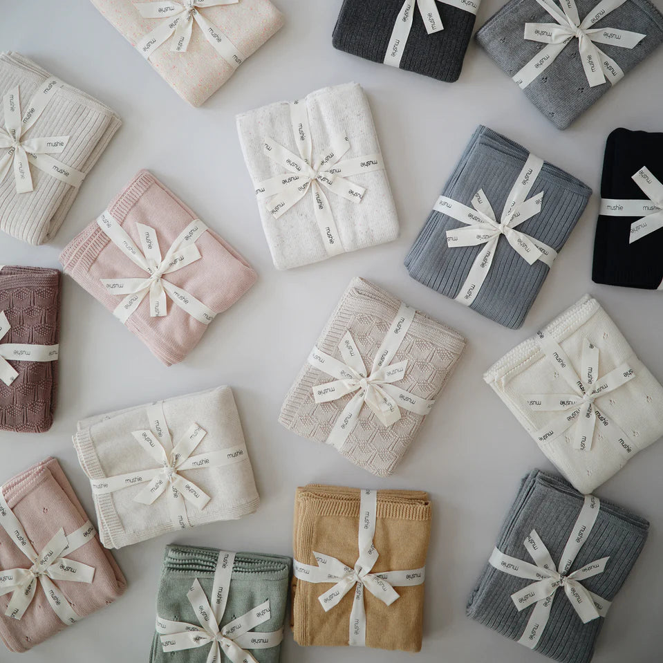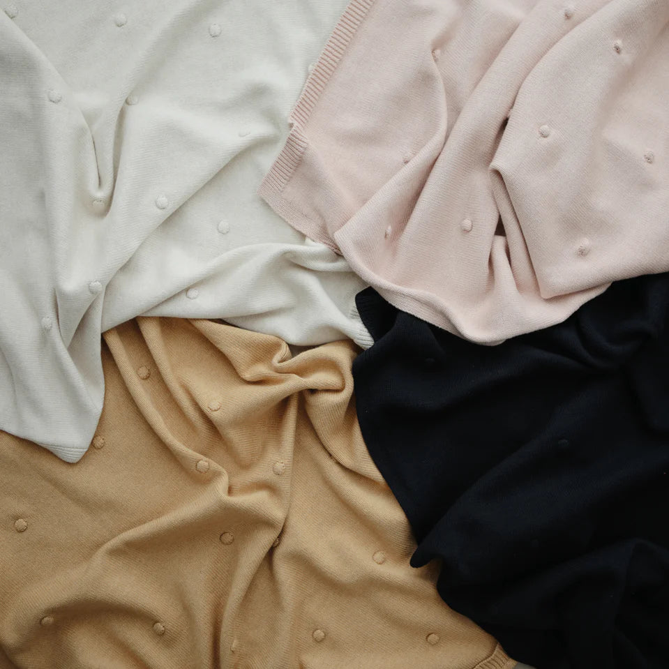 Keep baby warm and cozy in Mushie’s knitted baby blanket with gorgeous textured dots. Made from 100% organic cotton, this blanket is soft, versatile, warm & breathable, and perfect for all types of weather. The dots add texture and style, making it a great addition to your nursery.
