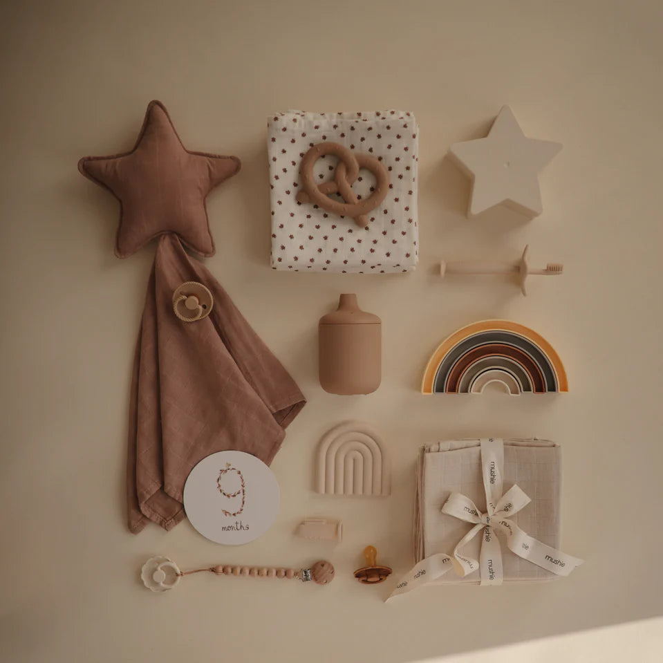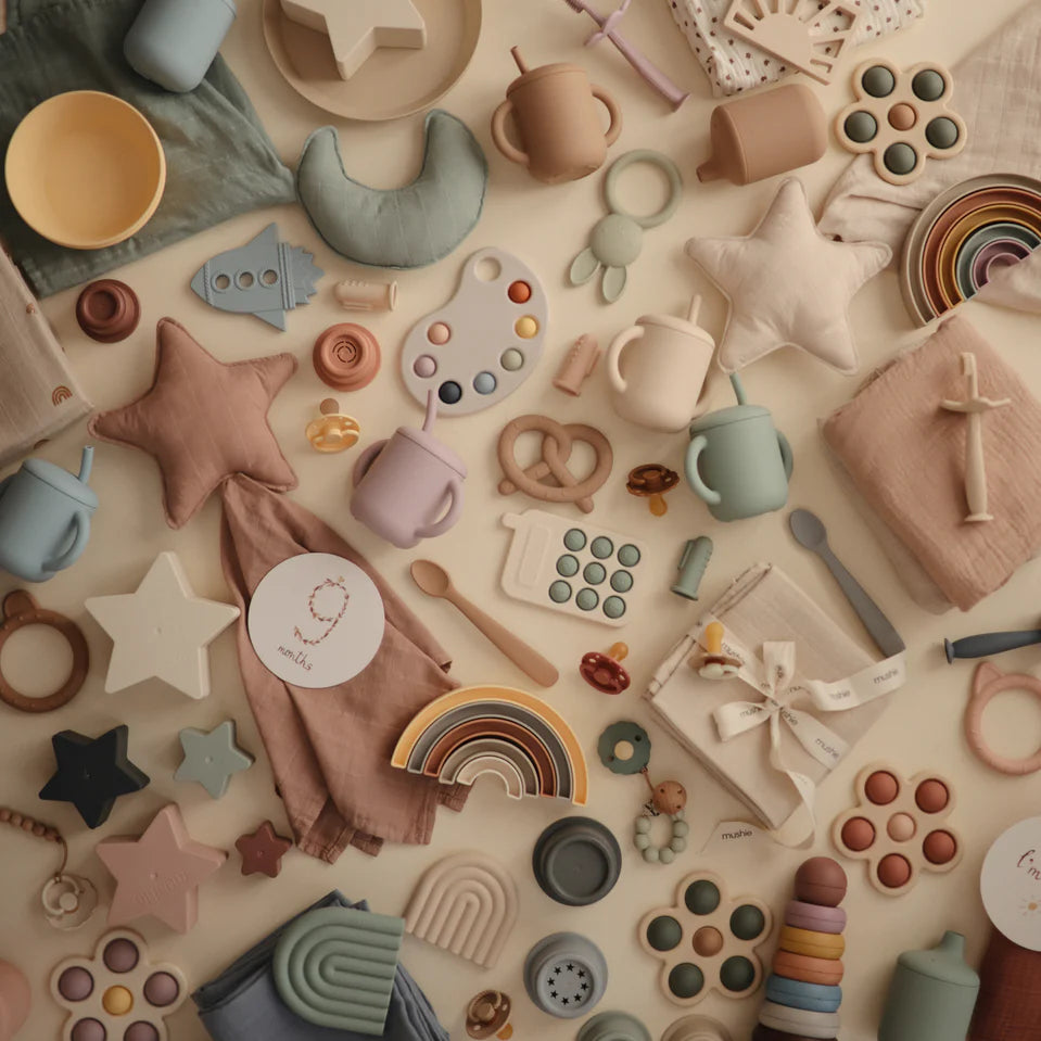 Help soothe your baby's irritated gums with Mushie's teethers. Made from 100% non-toxic, food-grade silicone, and designed to be easy to grasp by tiny fingers, our teethers are safe for your baby to use. Their playful design and sophisticated colors make them a stylish addition to your home.
