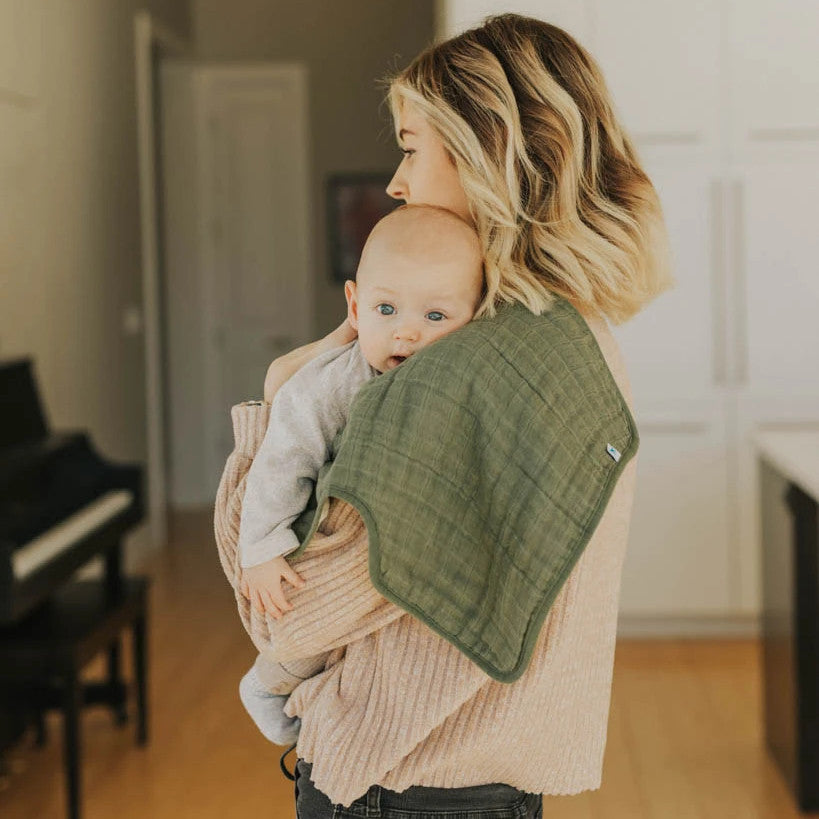 There's no use crying over spilled milk. With 4 absorbent layers of cotton muslin and an innovative shape, the Little Unicorn burp cloth keeps you clean and dry while baby's snuggled tight.