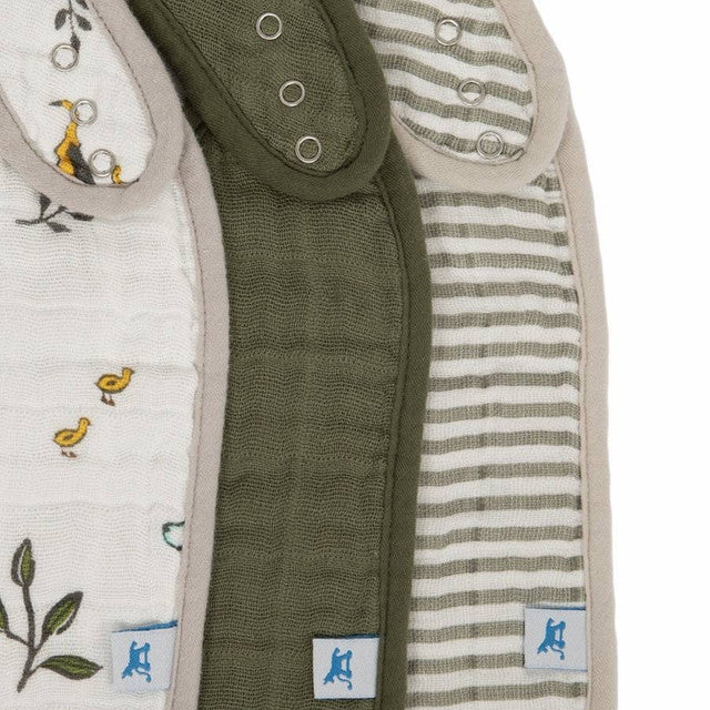 Soft and absorbent, the Little Unicorn multi-layer bibs are built to handle all of baby's spills and messes. Featuring three unique, hand-painted prints and a snap-on function to ensure a snug fit that grows with your baby.