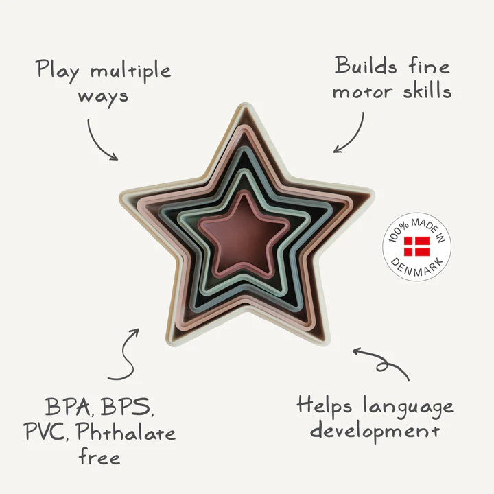 The Nesting Stars are inspired by the Danish town Aarhus and the toy is a part of the Danish Hygge collection of toys for children between 10 months - 3 years old.