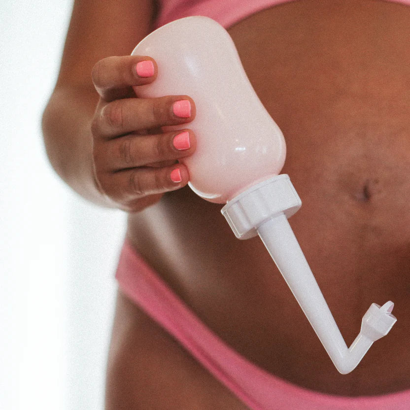 Simply fill with lukewarm water, or cool if you prefer. Point the nozzle towards the vaginal area and squeeze slowly. Perfect for postpartum healing and relief.