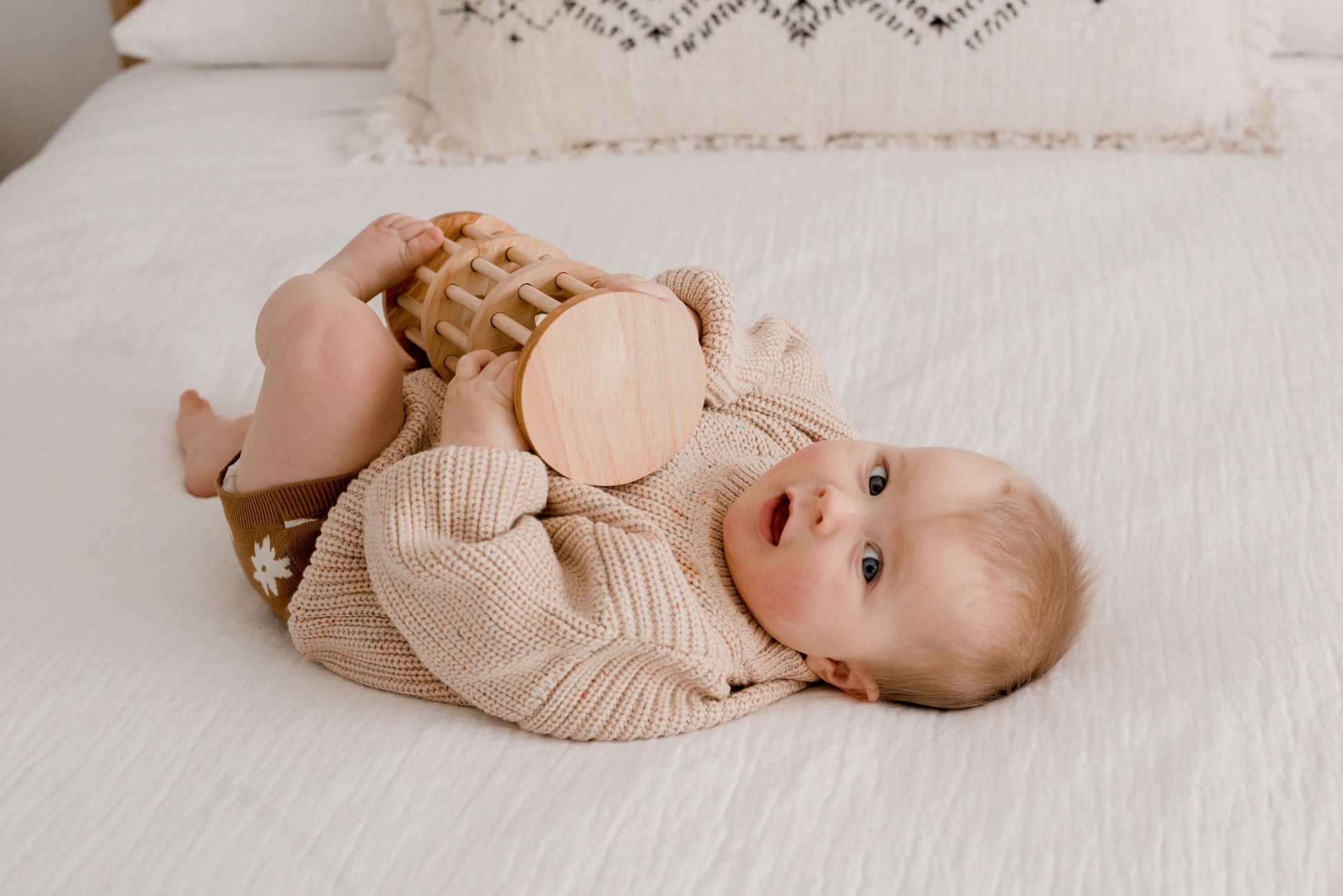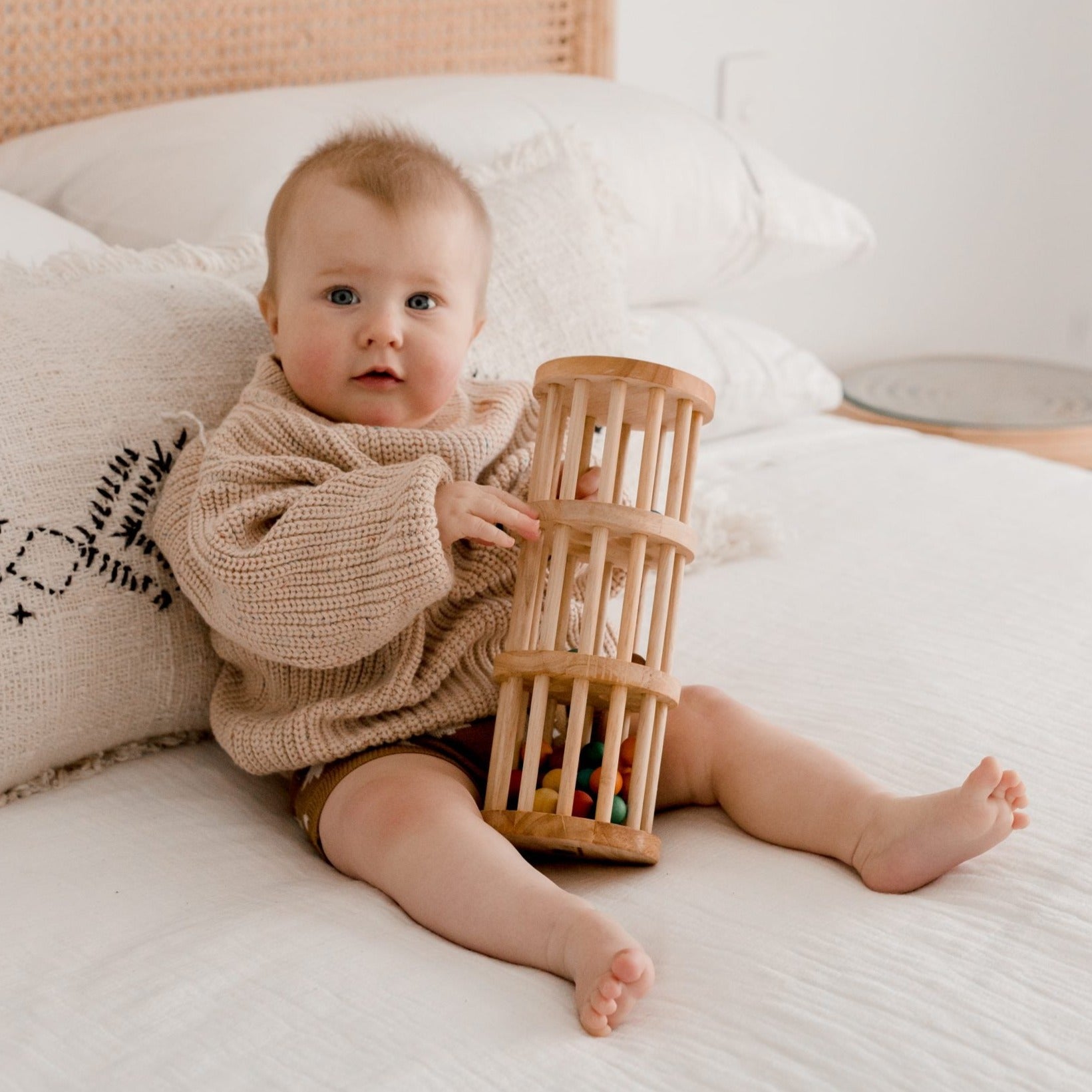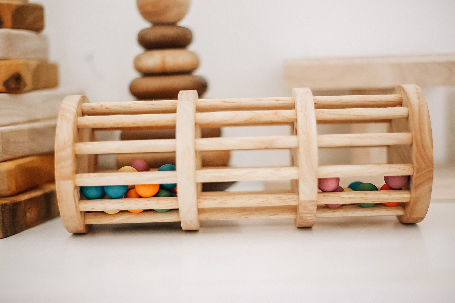 Turn the tower upside down and watch the colourful balls cascading down. This is a fun way to explore the concept of gravity. Your little one will love rolling this along the floor, and enjoy the soothing rain-like sounds.