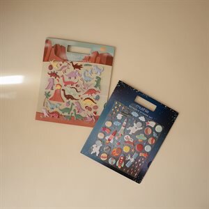 Reusable Mushie puffy stickers including a sticker book for the children who love the world of dinosaurs!