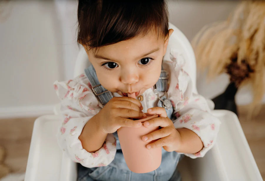 These adorable silicone smoothie cups are simple to clean and ideal for little hands learning to sip from a straw. They can be used as an open cup or with a lid and straw.