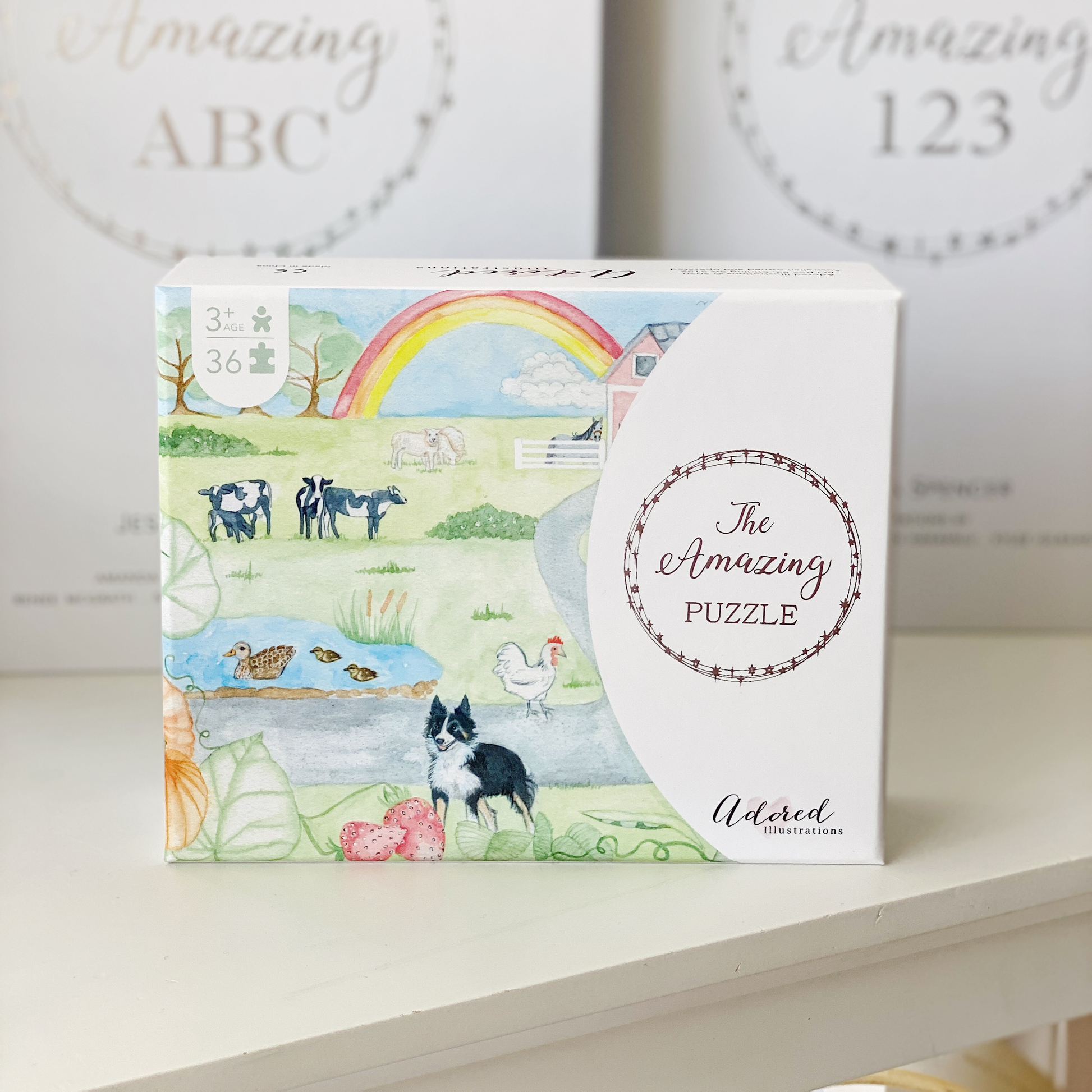 Welcome to The Amazing Puzzle; a farmyard filled with animals for your little ones to love and explore! The Amazing Puzzle comes in a beautiful matt white hardcover box with silver foil on the lid making it that extra special. With 36 pieces it's perfect for those little hands and can be kept at home or taken on those long trips away. The beautiful artwork has been illustrated by Gold Coast Artist Lauren Hakavalu.