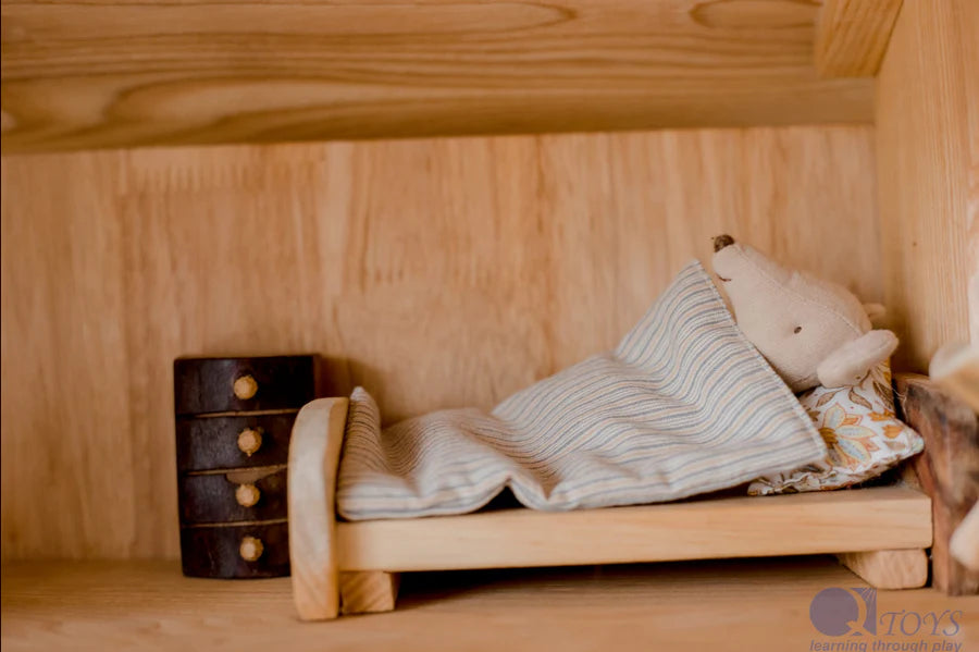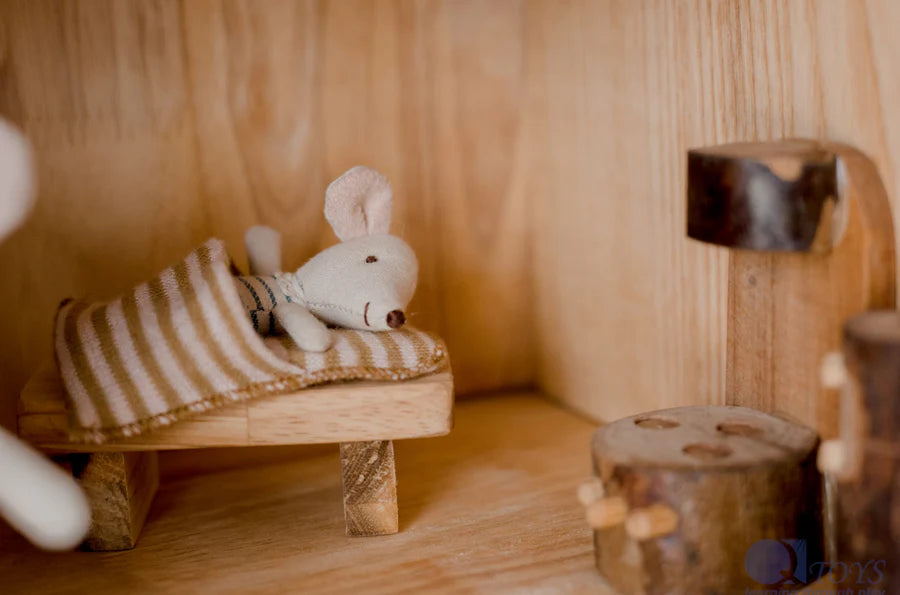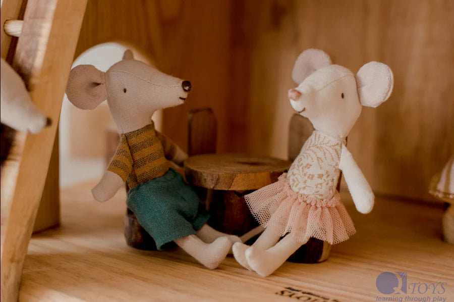 Looking for a toy that can spark your childs imagination? Our two-story cottage house is the perfect choice. The furniture is included as part of this two-story cottage house. It includes x4 gnomes, slide, ladder, table and chairs, bed, stovetop, drawers, couch & 2 stools. It does not include bedding and the mice. Imagination plays a crucial role in children’s early learning. It opens the door for children to explore the world around them. This two-story cottage house is one of our favorites for imaginative play. Boys and girls absolutely love imaginative play. Made from recycled branches and rubber wood, this treehouse will last for years to come.